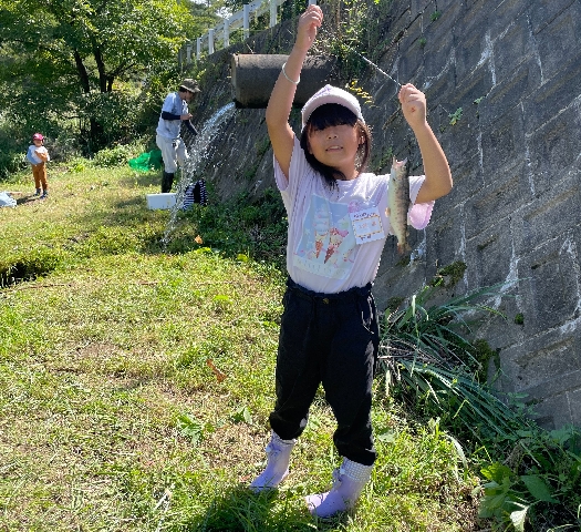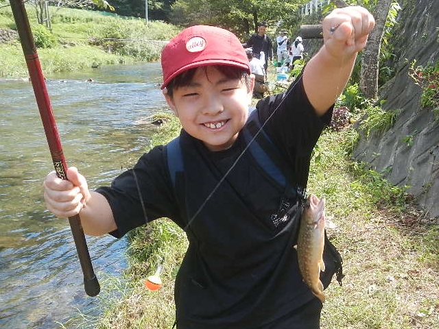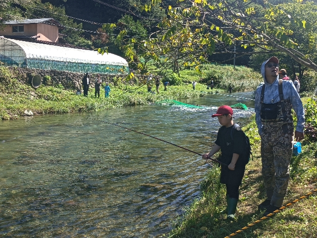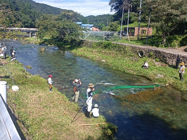 今日はお天気にも恵まれ釣り日和です。根田茂川で当漁協主催上州屋ご協力で親子釣り体験開催です。
