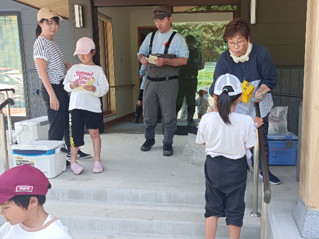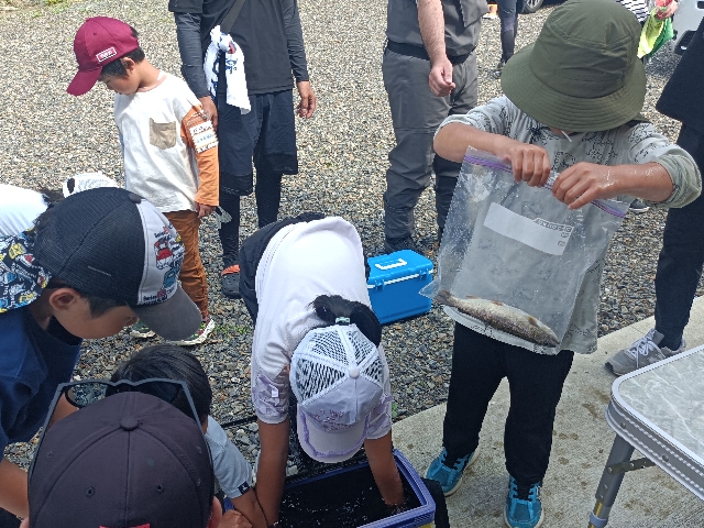 暑さ対策をしながら太田保育園鮎放流会・・・