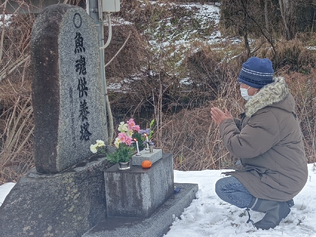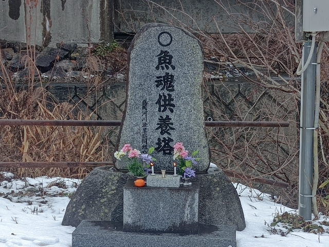 漁業協同組合大晦日1年の〆は魚魂供養塔で・・今年は魚釣りは余り出来なかったから殺生はしていないけれどネ!・・・って言うかほとんど坊主かな?・・・来期の大漁を祈願して手を合わせたけれどお供え物が蜜柑1個だけじゃ余り御利益は無いかな?