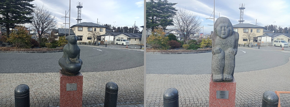石鳥谷の駐車場でちょっと怖いような変わった人形が?近づいて見ると「おねがい、うんこしないでだって!」笑える〜ぅ・・・