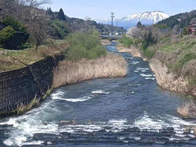 根田茂川から簗川を偵察・・・山吹、芝桜が咲いて岩手山がくっきりで景色は申し分ないけれど何故か釣果が?