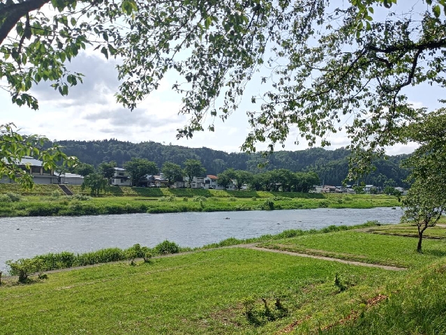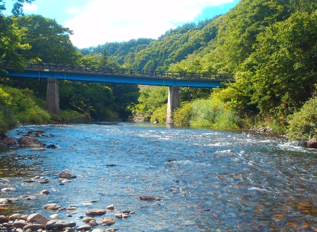 閉伊川へ走ったらなんとごた濁り、なのに小国川は澄んでいます。