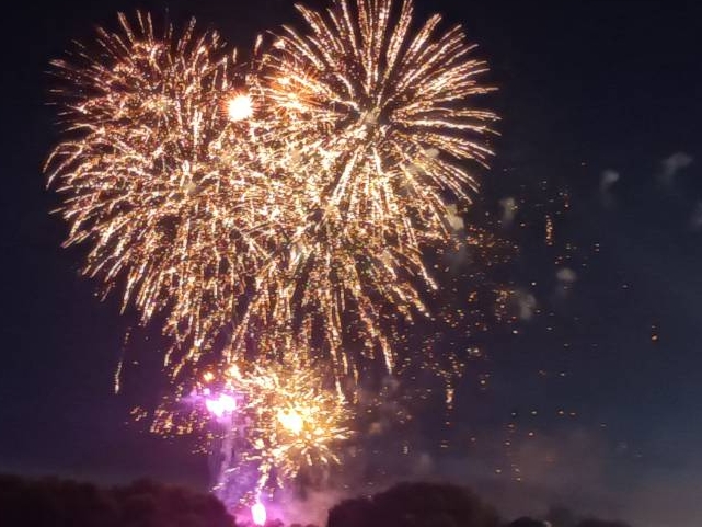 変な親父がボ〜っと突っ立て隣のピカピカ頭が逆光で花火が見えずらいです。