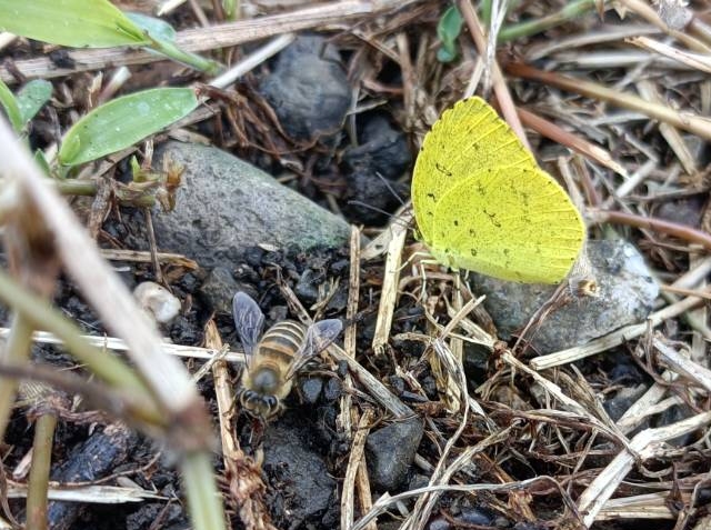 あ〜らぁ大変!立ちしょんしたら黄色い蝶々とミツバチが・・・