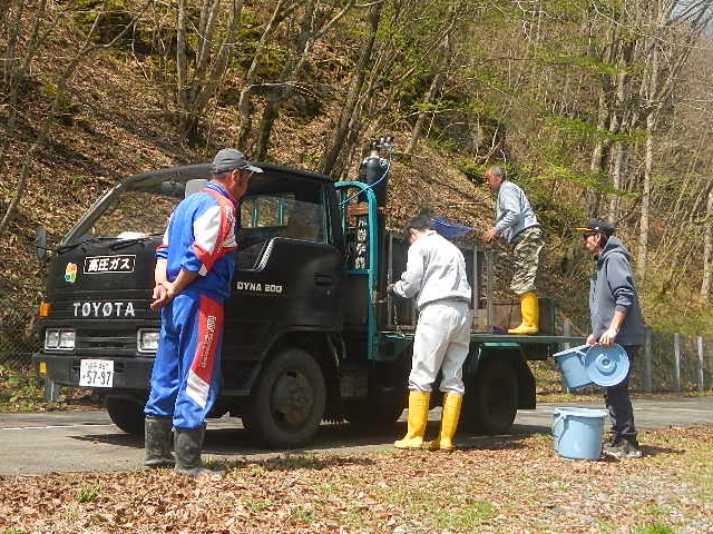今日は根田茂川に桜鱒稚魚50kgと山女魚成魚20kgの放流です。春には山女魚稚魚100kg放流していますから来シーズンはかなり楽しめます。