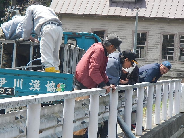 漁協前にホースで多めに放流・・・この場所期待できますネ!