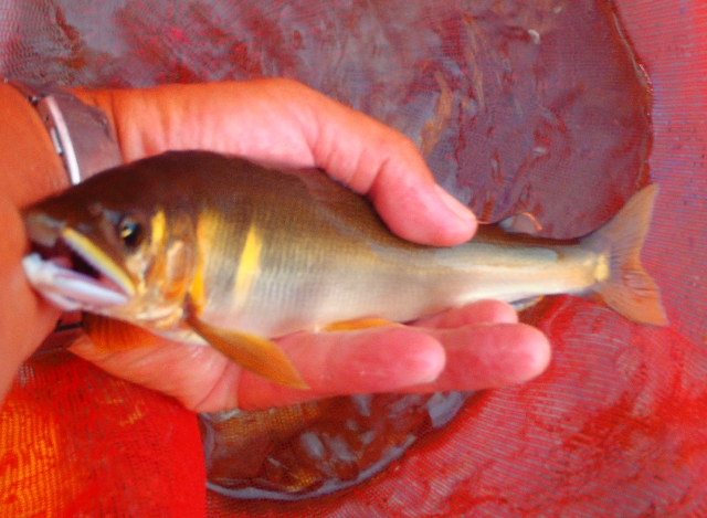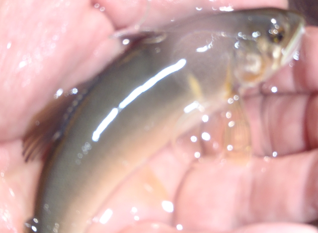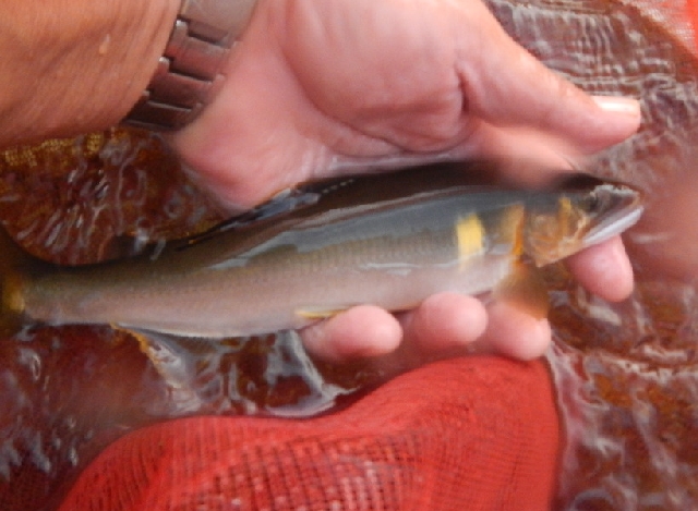 この冷たい雪解け水の中元気よく泳いでいます。