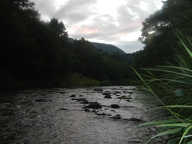車迄戻る時、暗くなって川の石が見えなくなって少し増水してきておっかながたぁ〜!