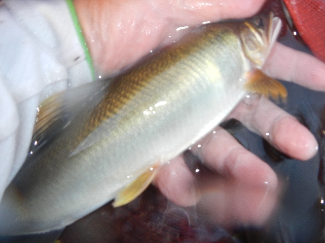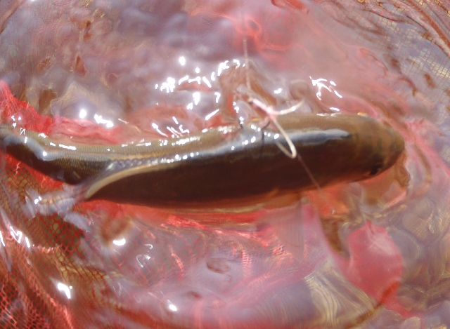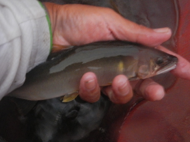 そして今年の初鮎はバッチリヤナギ針に掛かった背掛のおチビちゃん!終わってみればツ抜け1歩手前