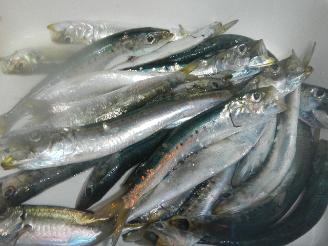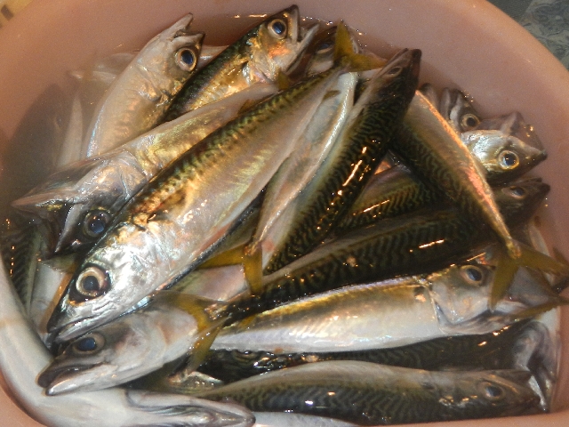今日の釣果はサバ55匹、イワシ24匹、アジ2匹・・・さぁ〜これから帰って地獄の捌きが待っています。