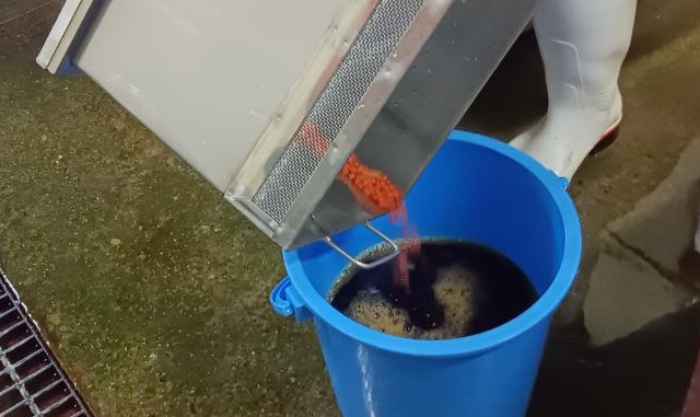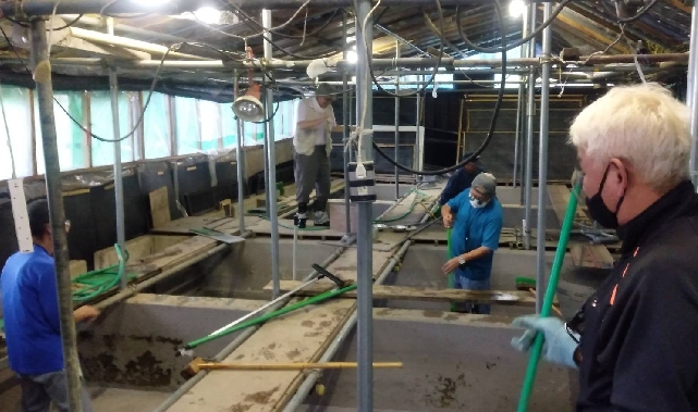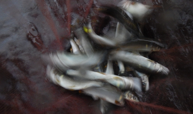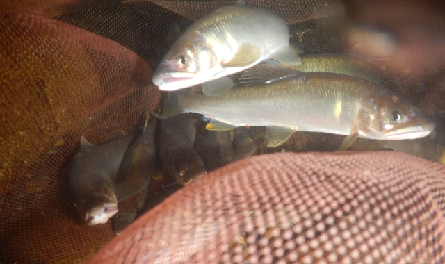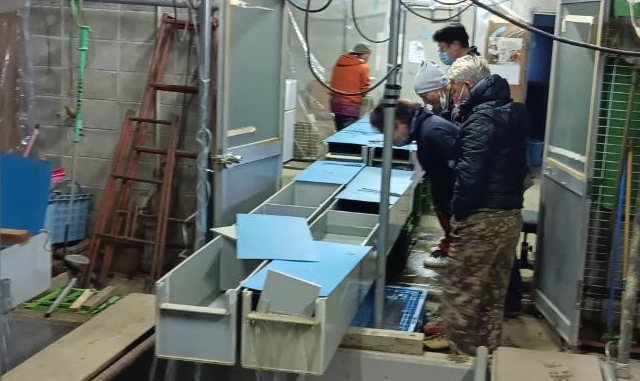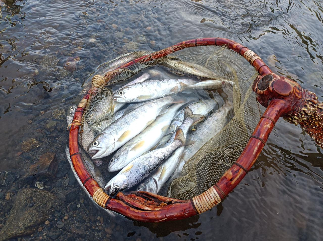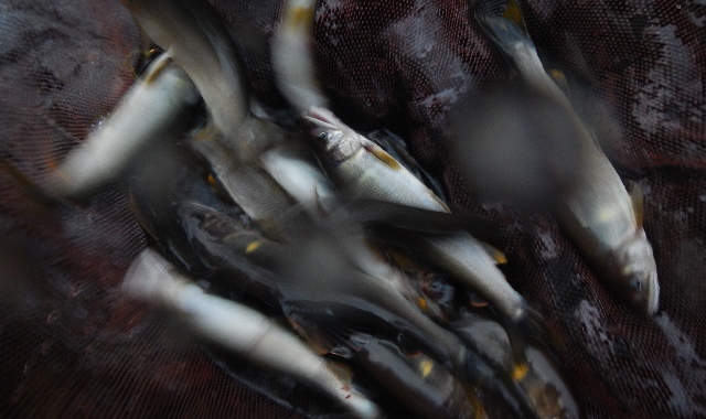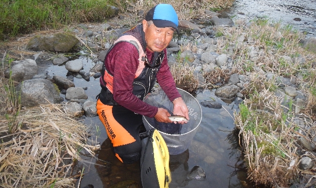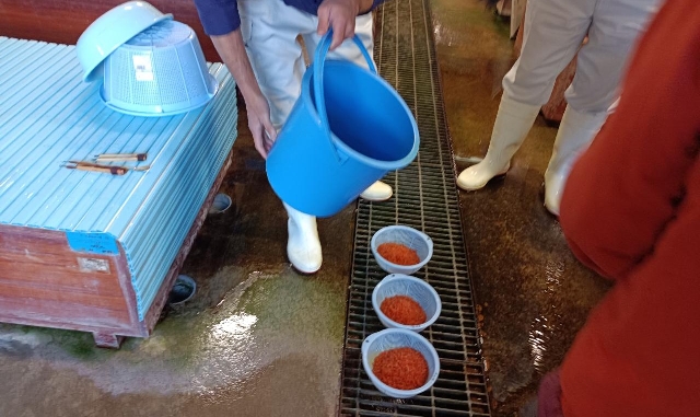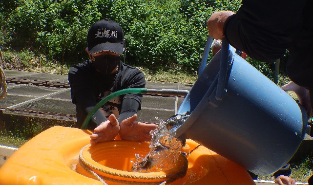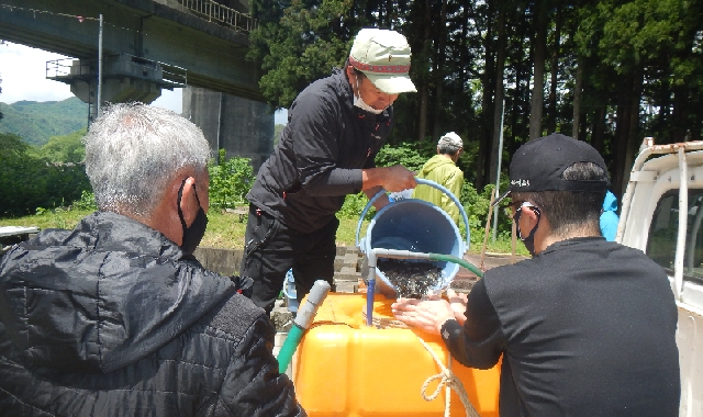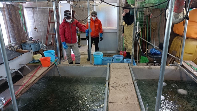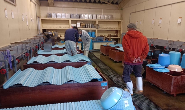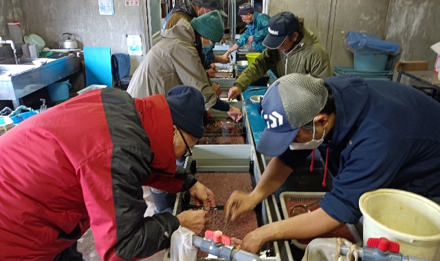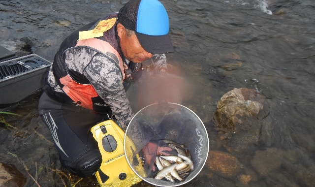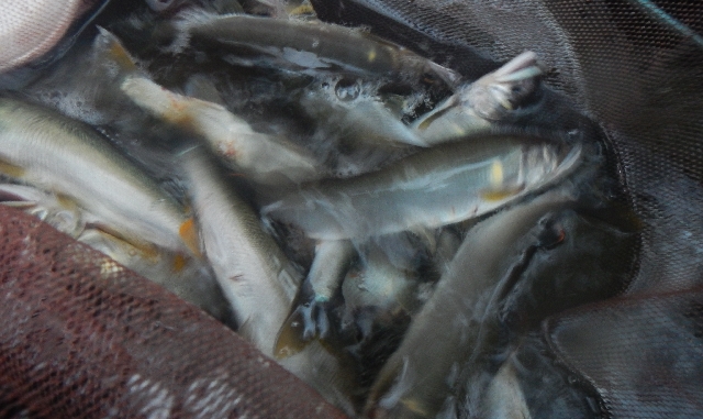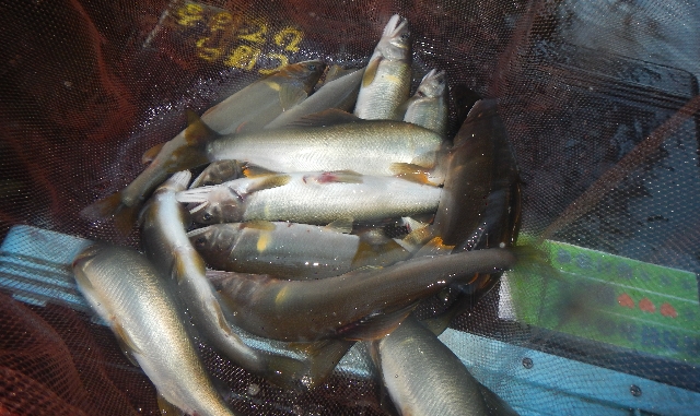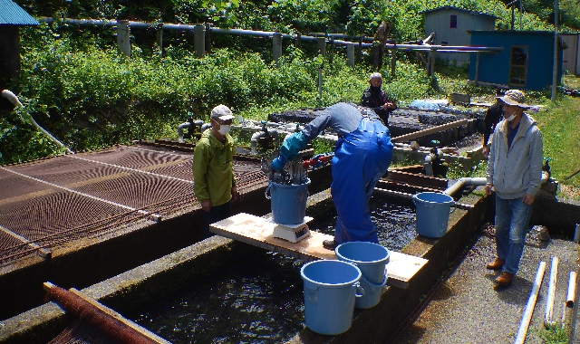今年は不漁で15000尾だけです。県からの買い上げ1尾1.5円、どう見ても赤字ですね。