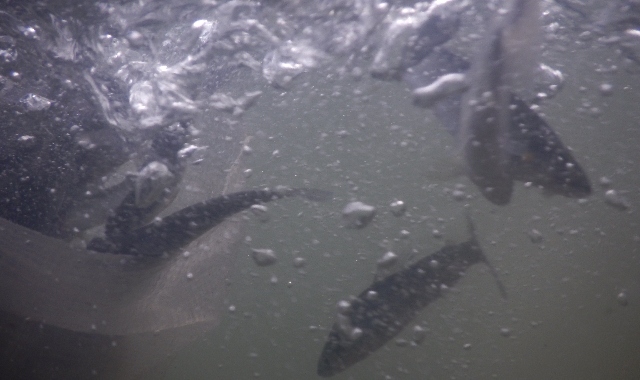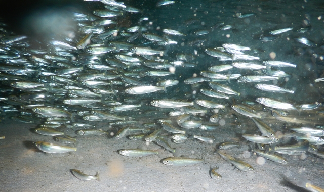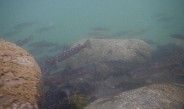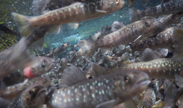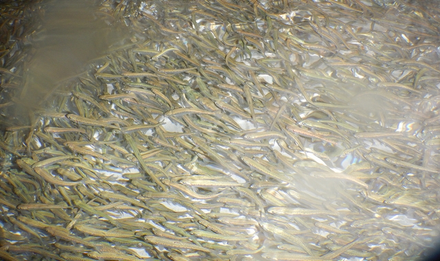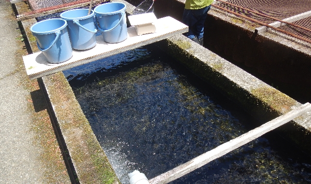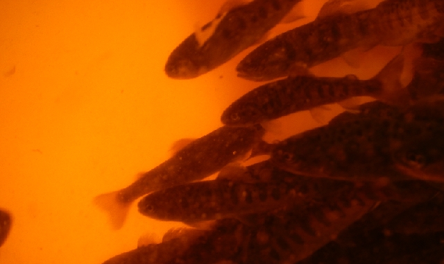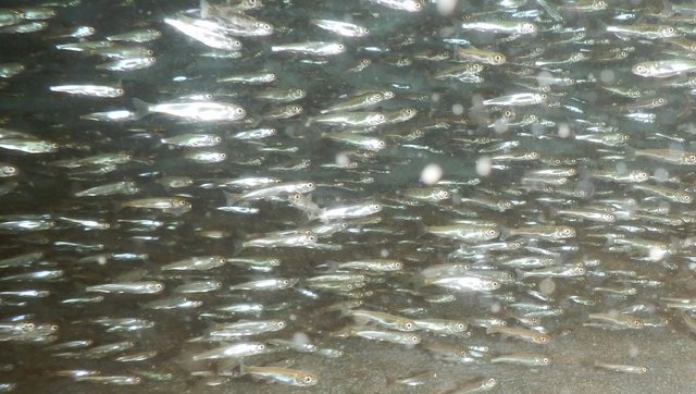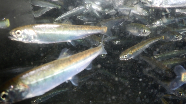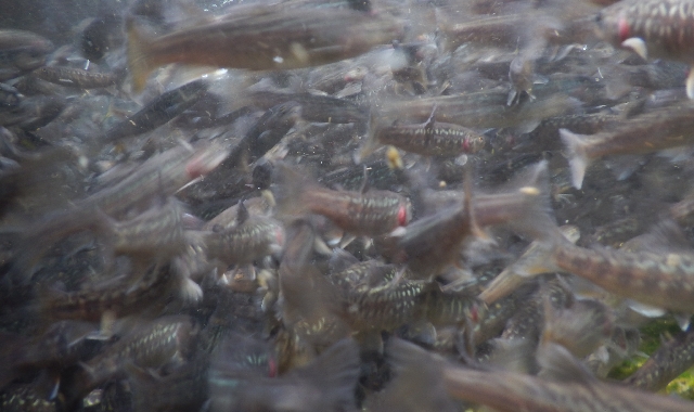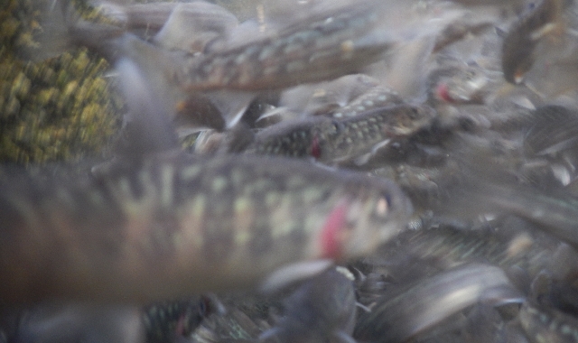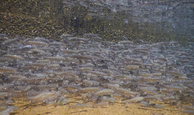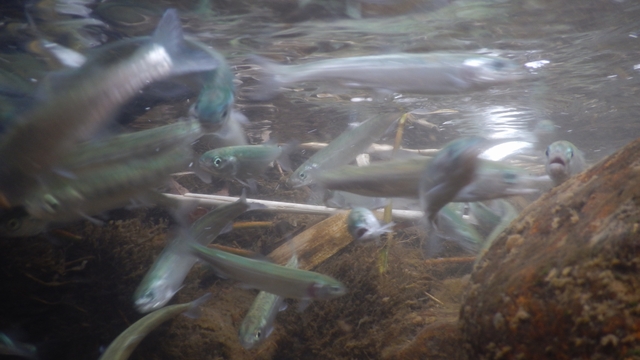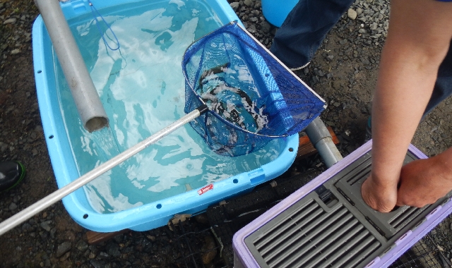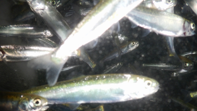 鮭稚魚元気に泳いでいます。放流が楽しみです。