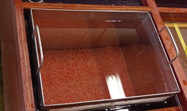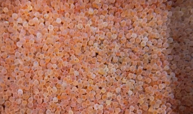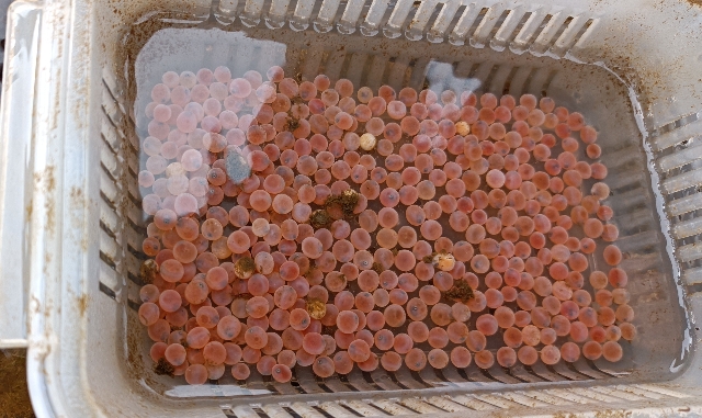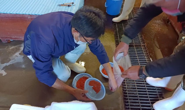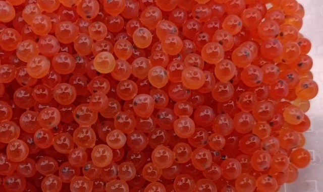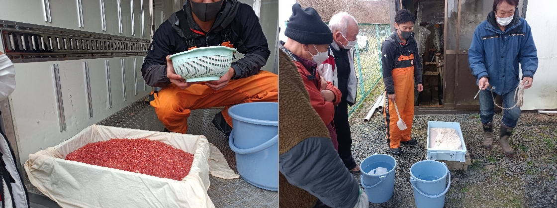 北海道から鮭の発卵眼が届きました。北上川水系は鮭不漁の為北海道からの支援です。