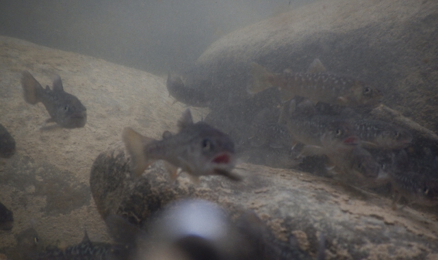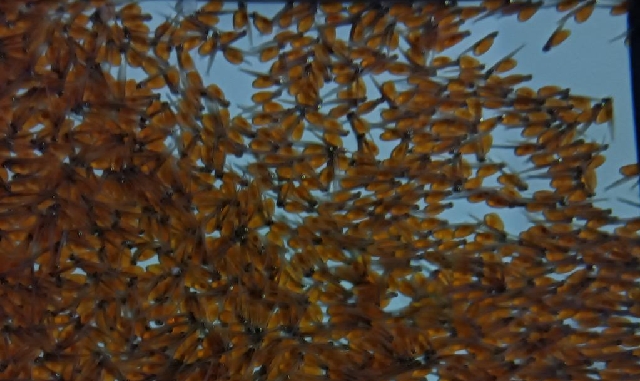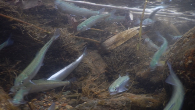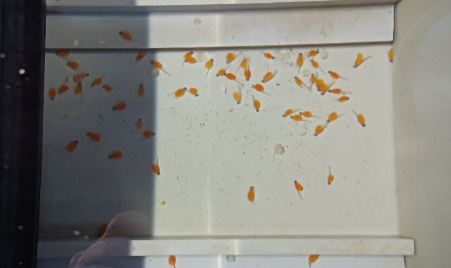 鮭の産まれたばかりの赤ちゃんが元気です。