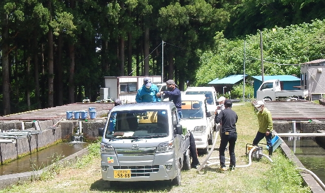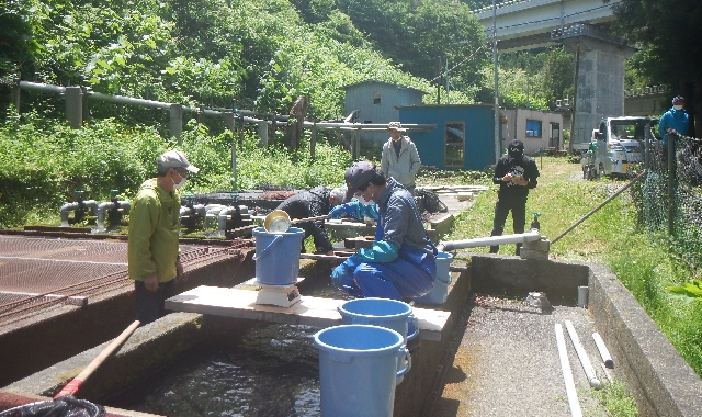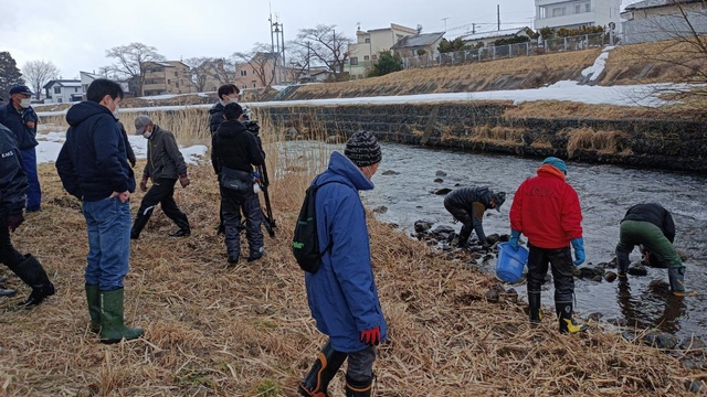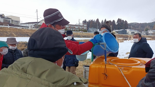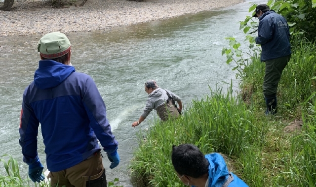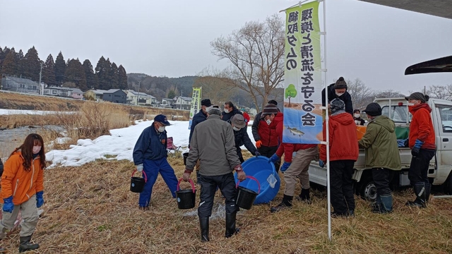 雫石川東部漁業協同組合と綱取ダムの清流と環境を守る会での放流です。