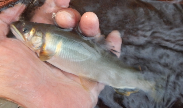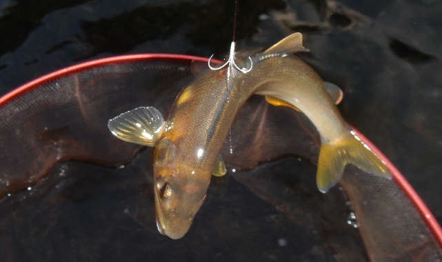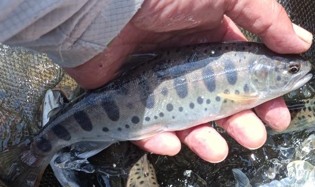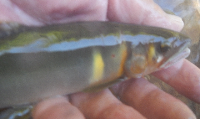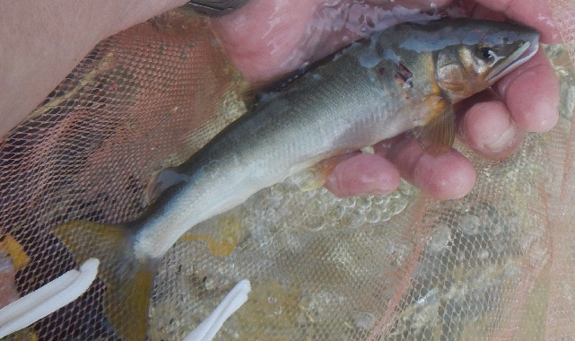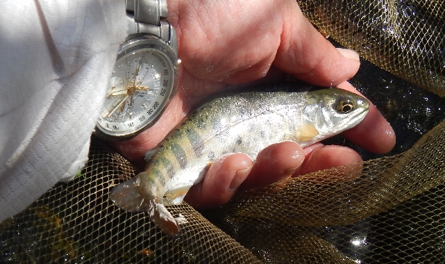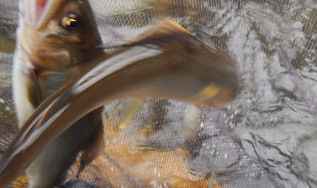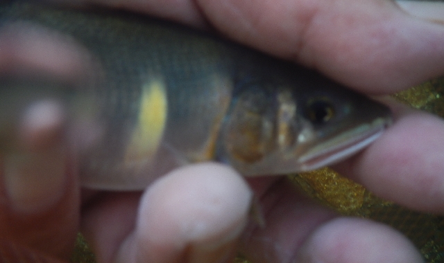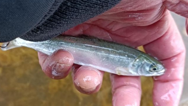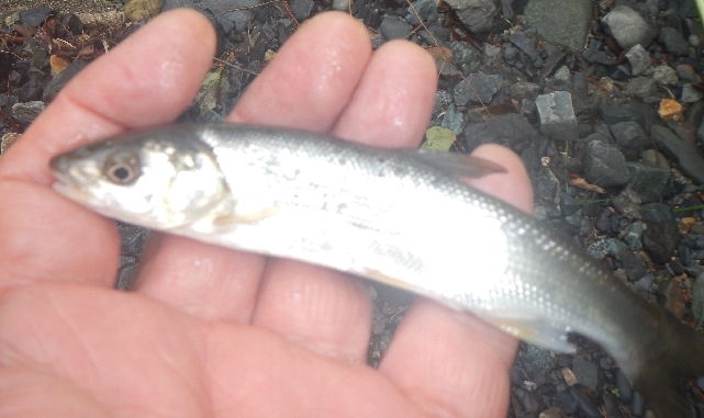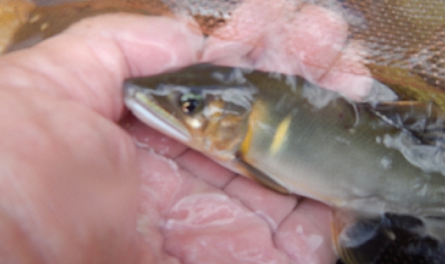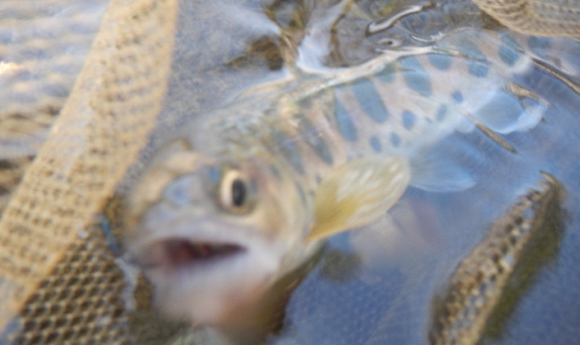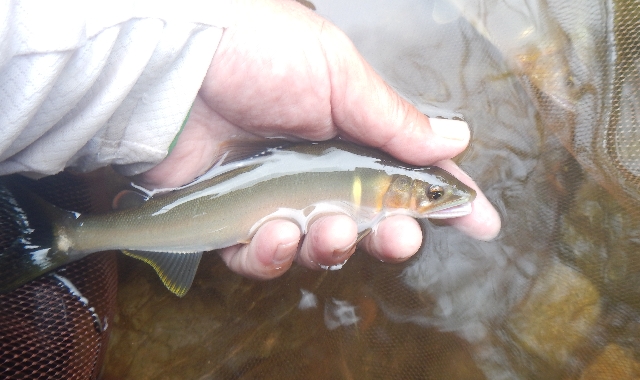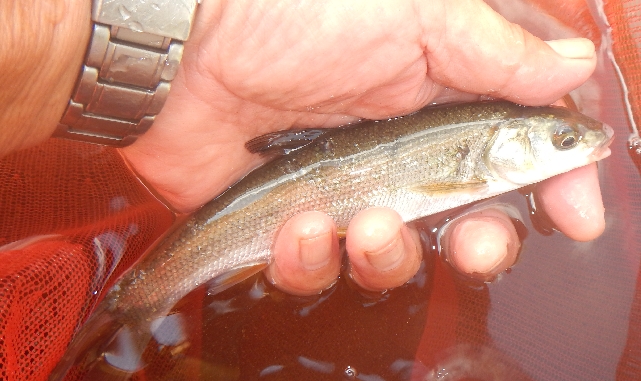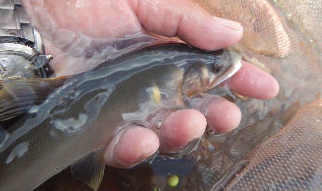 孵化したサクラマスの稚魚・・・鮭の稚魚より一回り小さいです。