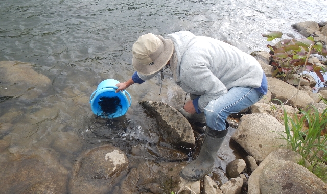 今日は鮭稚魚放流会です。放流場所は中津川と雫石川に15000尾!