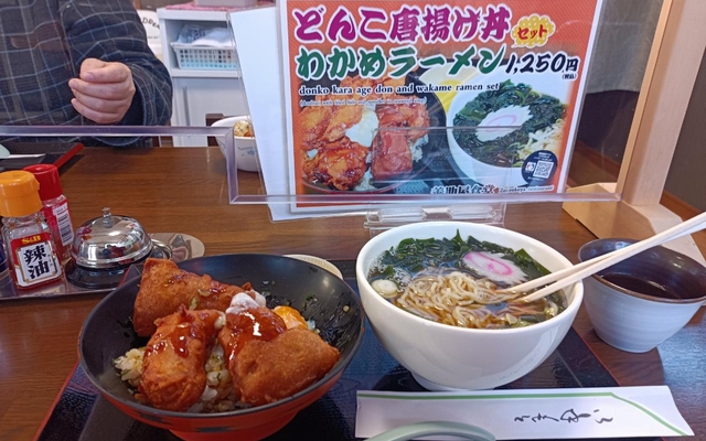 どんこ唐揚げ丼わかめラーメンセットで腹ごしらえ・・・
