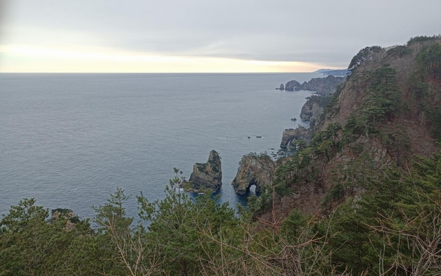 鵜の巣断崖…駐車場から展望台までチョット遠いですネ!寒いと余計遠く感じます。