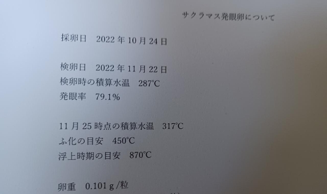 内水面試験場からサクラマスの発卵眼1万粒提供してもらいました。