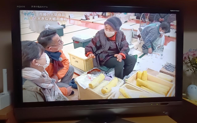 可愛いおばあちゃんが、おっきい沢庵売ってますね。