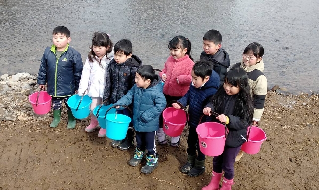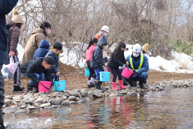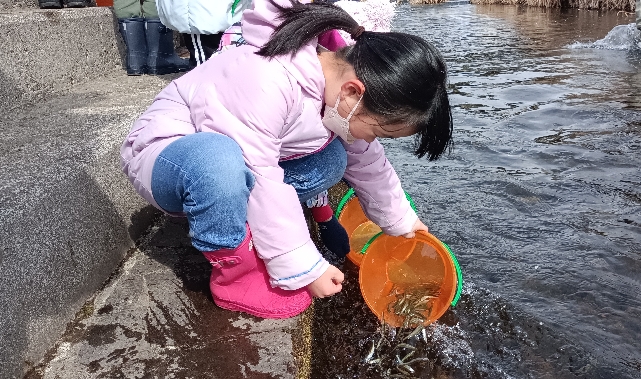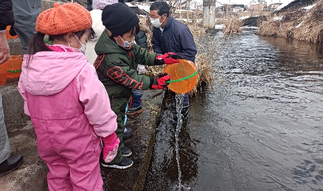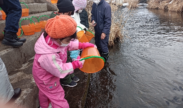 2月22日(水)太田保育園鮭稚魚放流会