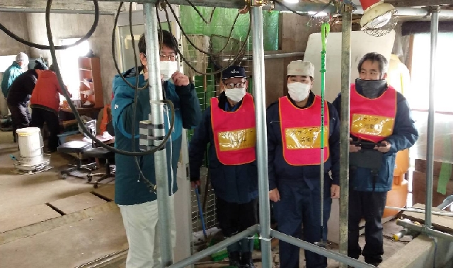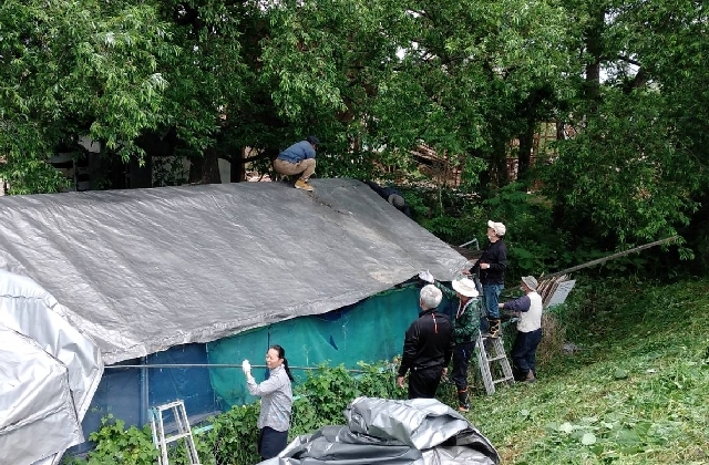 組合員12名での人海戦術、大変な作業です。あ!腰を伸ばしている人が