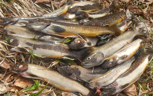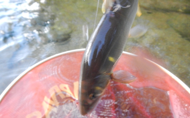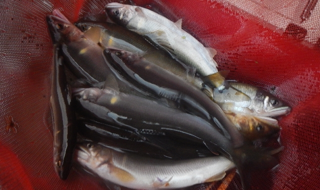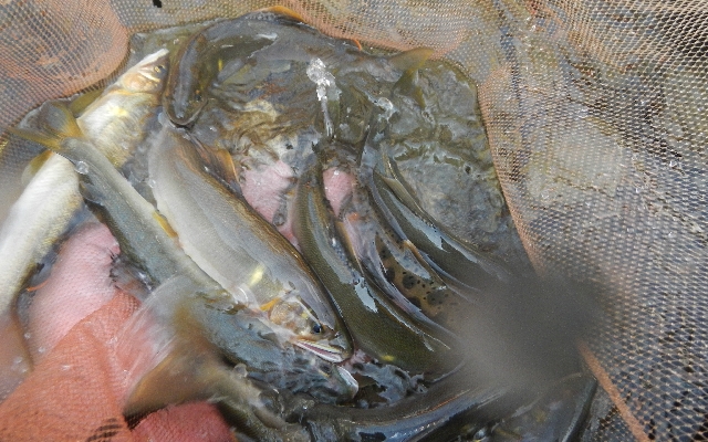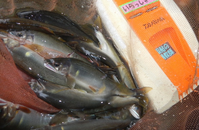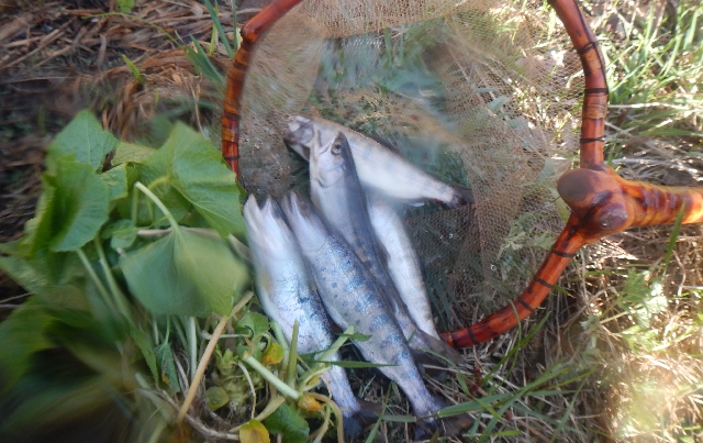 15〜18p程に育った山女魚、岩魚、今すぐにでも塩焼き・・・いけそう〜!
