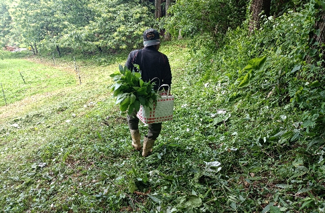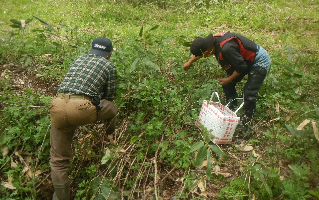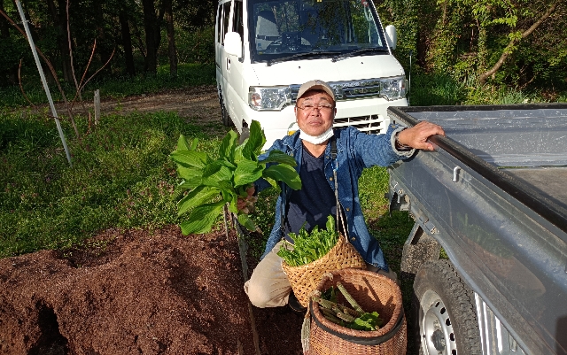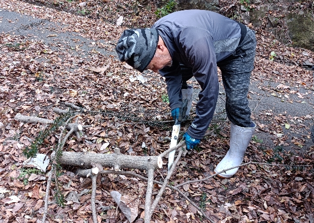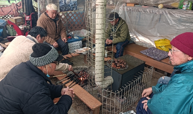 80歳の組合長老体に鞭を打ってスコップをもっています。・・・・