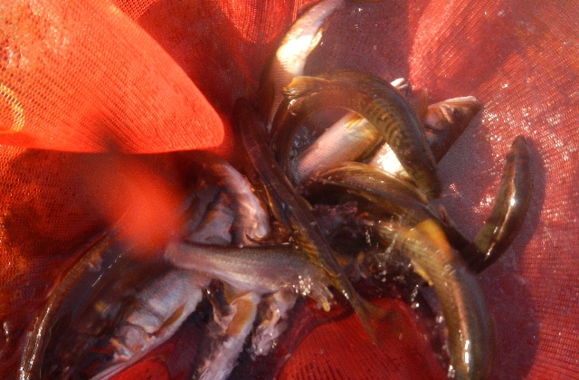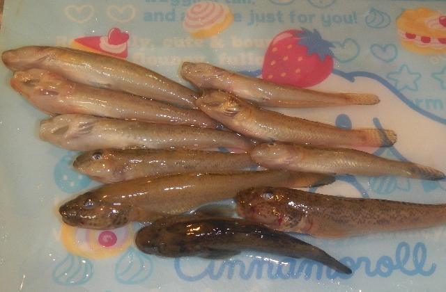 見よこの貧果・・・2人合わせて・・・9匹だけ、さぁ!どうやって食べましょうかこの小さすぎるハゼ?