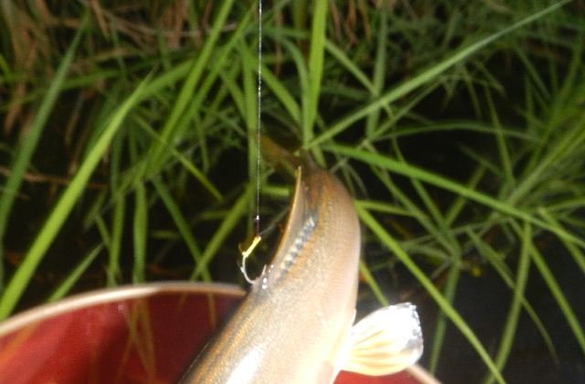 やっと釣れたと思ったらクチボソ!