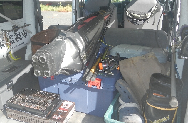 鮎道具を片付けて車の中は海釣り仕様に・・・