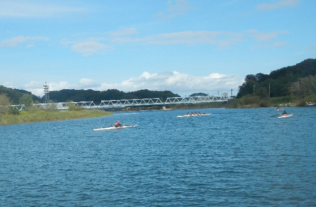 閉伊川河口付近到着・・・宮古高校ボート部が練習しています。