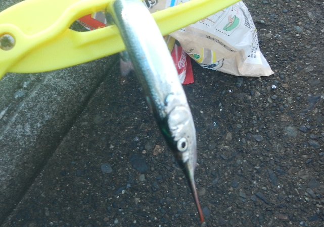 今日のサヨリは5時間コマセを打ち続けて・・・1匹・・・