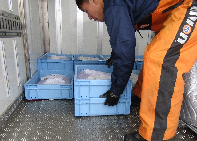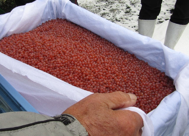 秋鮭不漁の中、北海道から宮古経由で鮭の発眼卵約70万粒届きました。