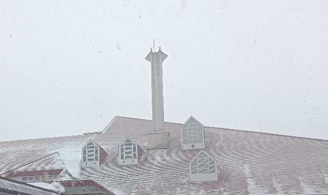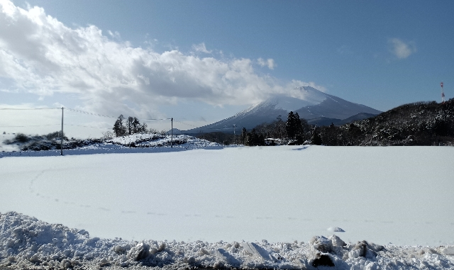 盛岡は晴天だけど松尾は吹雪です。