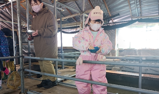 真剣なまなざしでの餌やり将来漁業協同組合初の女性組合長誕生ですかね!