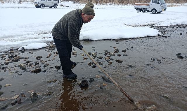 今日は来週の太田東小学校鮭稚魚放流会に備えて川の整備です。子供達が来ますので安全第一ですネ。川の中にはクロカワ虫がたくさんいます。 春はもうすぐです。そして冷えた体は囲炉裏を囲んでお疲れ様でした。