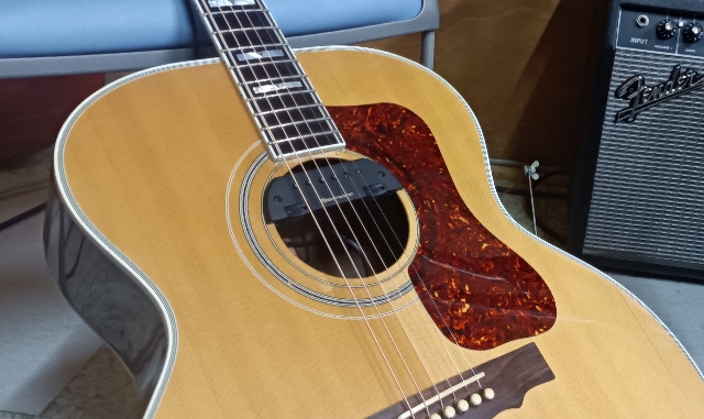GUILDに装着・・・エンドピンに穴をあけるのにチョット迷ったけれどネ!
