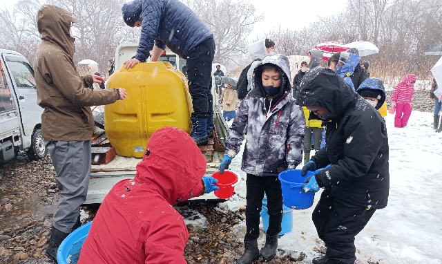 2月18日(土)鮭稚魚放流