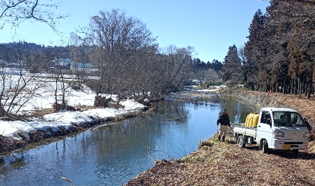 今日はサクラマス発卵眼放流です。八幡平市の水産技術センターから発卵眼を1万粒購入、金土日と3日間に分けての発卵眼の放流です。