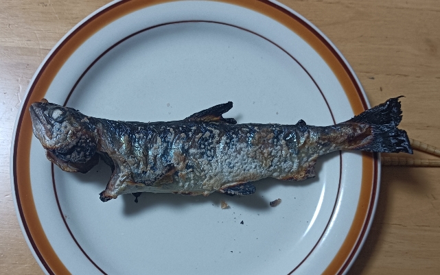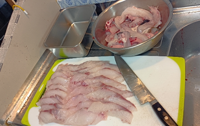 家に帰って夕食のおかずは以前釣ったサヨリの唐揚げを・・・・