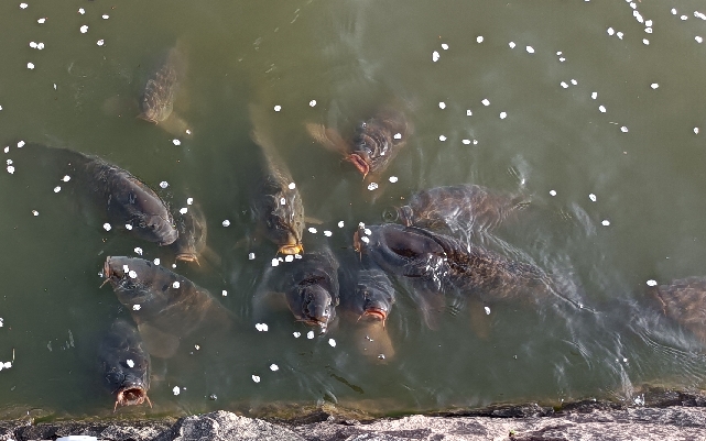 先ずは組合長の注意事項の説明を聞いて・・・・・さあ!餌やり開始です。