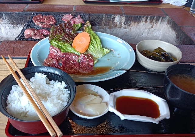 帰り道OK牧場で昼食・・午後の産卵床造りに備えて、カルビー定食で腹ごしらえ・・・