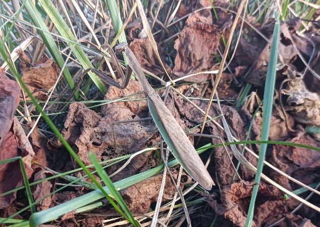 もうそろそろ初雪だっていうのにカマキリがいます。温暖化はこんなところまで!