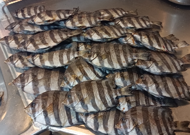 石鯛の幼魚シマシマの一夜干しが出来上がりました。子供の頃よく食べましたネ!ちなみに釣った訳ではありません。