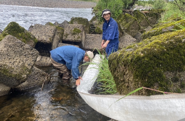 今日は雫石川に鮭稚魚放流・・・正真正銘の純粋な雫石川産です。