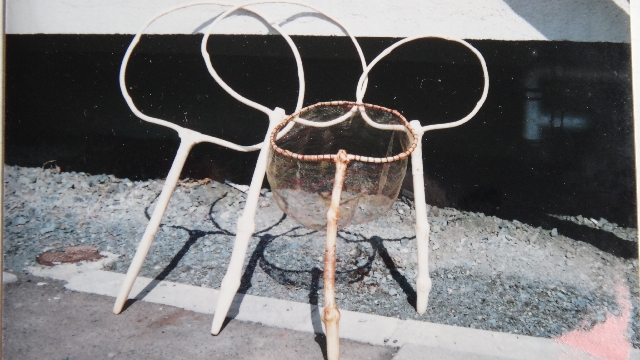 釣友のOさんの案内で、1996年2月・カヤの木を採りに宮城県松島へ、カヤの木の採り方、皮のむき方、枠の繋ぎ方等色々伝授してもらい タモ作りを始めました。